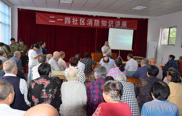 首先,熊參謀圍繞居民日常安全用水、用電、用氣等安全知識進行了詳細講解,從院區實際出發講授了火災隱患消除、撲救初期火災、自救與逃生、組織人員疏散以及消防器材的管理與使用等知識,并用大量圖例講述了如何預防室內著火、如何自救、樓內著火如何安全逃生等,一幕幕火災現場令人觸目驚心,從心里敲響了安全的警鐘。