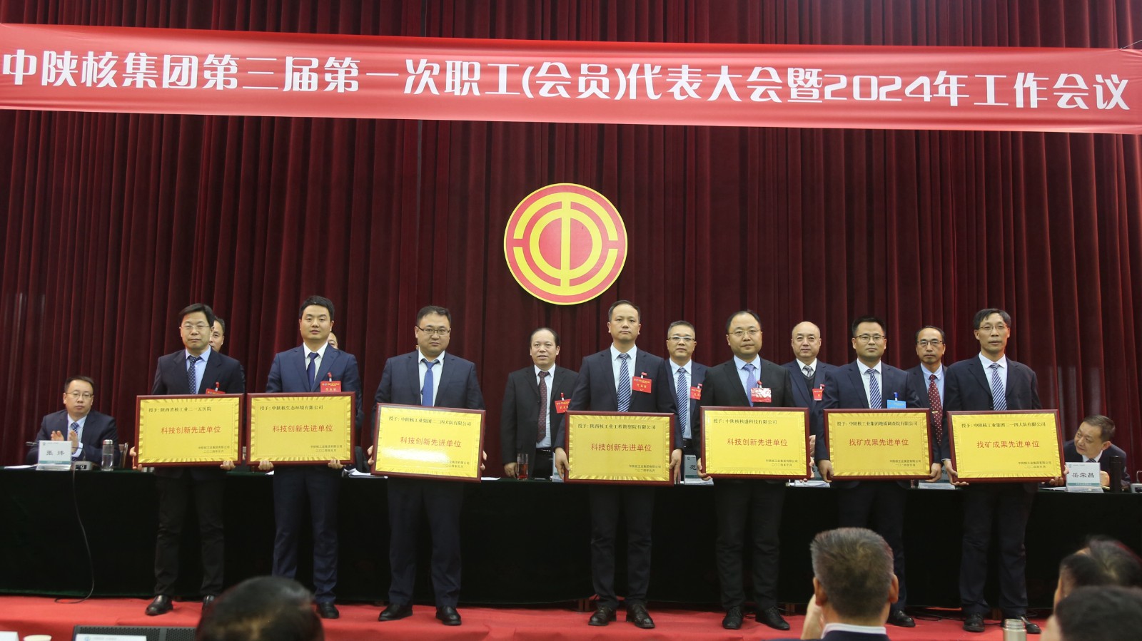 2024年1月19日,中陜核集團召開第三屆一次職工(會員)代表大會暨2024年工作會議,會上對在2023年度工作中做出突出貢獻的單位和個人進行表彰。公司榮獲集團公司“找礦成果先進單位”、陜西省寧強縣黃泥坪地區金礦詳查項目組榮獲“先進集體”榮譽稱號,黃泥坪金礦項目負責紀冬平及物化探院院長王漢民榮獲“先進個人”殊榮。