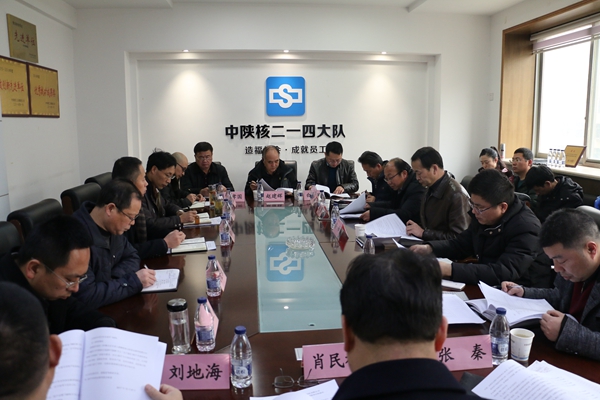 2018年1月2日下午,中陜核工業集團公司副總經理侯峰帶領由企業管理部、發展規劃部、財務會計部、人力資源部、科技信息部、審計部、生產安全部、地質勘查部、核鑫公司、紀檢監察部等部門人員組成的考核組,對照年初簽訂的《2017年度經營業績責任書》對二一四大隊有限公司進行經營業績考核。二一四大隊有限公司領導班子及部分部門負責人參加了考核會議,會議由集團公司企業管理部部長關勇主持。