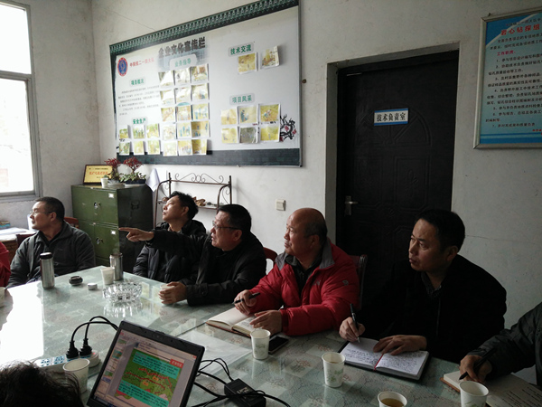 野外檢查結束后,在項目部會議室召開了工作會議,王義忠總工就秋樹坪項目施工進展和取得的主要成果進行了詳細匯報,同時就公司城固高純硅項目進展情況也做了簡要匯報。