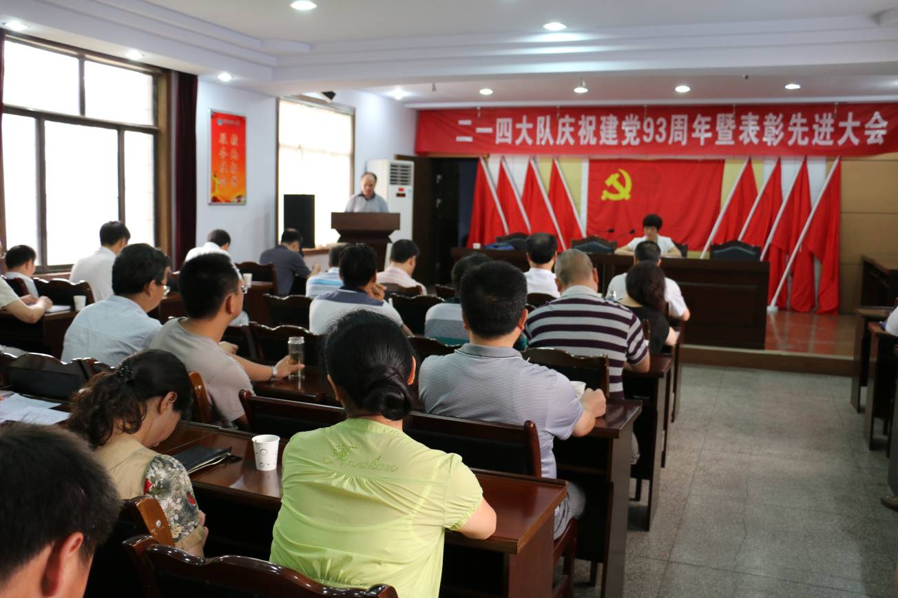 隨著鏗鏘有力的國歌響起,全體黨員肅然起立,在皮紅芳隊(duì)長的主持下,慶祝活動(dòng)開始。黨委書記趙建輝同志致詞,回顧了中國共產(chǎn)黨成立93周年來的光輝里程,對群眾路線教育實(shí)踐活動(dòng)的開展情況進(jìn)行了簡短總結(jié),同時(shí),對全隊(duì)黨員干部提出了三點(diǎn)要求:一要勤于學(xué)習(xí),善于思考,努力提升理論修養(yǎng)和知識(shí)水平。要求每位黨員干部,要保持良好的學(xué)習(xí)習(xí)慣,做認(rèn)真學(xué)習(xí)的表率。通過掌握過硬的業(yè)務(wù)技能,不斷提高自身科學(xué)判斷形勢的能力、應(yīng)對復(fù)雜局面的能力、學(xué)法用法的能力和駕馭市場經(jīng)濟(jì)的能力。二是敢于探索,勇于實(shí)踐,切實(shí)提高執(zhí)政行政能力。要求全隊(duì)黨員干部樹立正確的事業(yè)觀,以高度負(fù)責(zé)的態(tài)度和求真務(wù)實(shí)的精神,沉下心來,研究和規(guī)劃好本單位、本部門的工作思路和工作方向;堅(jiān)持把實(shí)現(xiàn)最廣大人民的根本利益作為工作的出發(fā)點(diǎn)和落腳點(diǎn),真正解決職工群眾的實(shí)際問題。要把立黨為公、執(zhí)政為民的本質(zhì)要求真正落到實(shí)處。三是以身作則、嚴(yán)于律已,加強(qiáng)和改進(jìn)作風(fēng)建設(shè)。要求全隊(duì)黨員干部認(rèn)真落實(shí)習(xí)近平同志的講話精神,身先士卒、率先垂范,以“為民、務(wù)實(shí)、清廉、高效”的工作作風(fēng),干干凈凈做事,秉公用權(quán)、不以權(quán)謀私,依法用權(quán)、不假公濟(jì)私,廉潔用權(quán)、不貪污腐敗,始終保持共產(chǎn)黨人的政治本色。